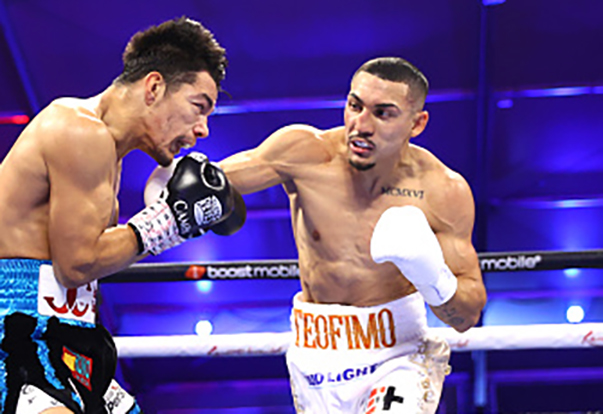 ロペスが7回TKO勝利、カンパに強烈な右を打ち込む(Getty)