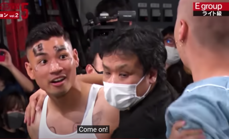 こめおに挑発する金城(朝倉未来YouTubeより)