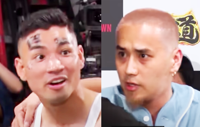 こめお(右)とラッパーの金城行虎の因縁の対決が決定!(朝倉未来YouTubeより)