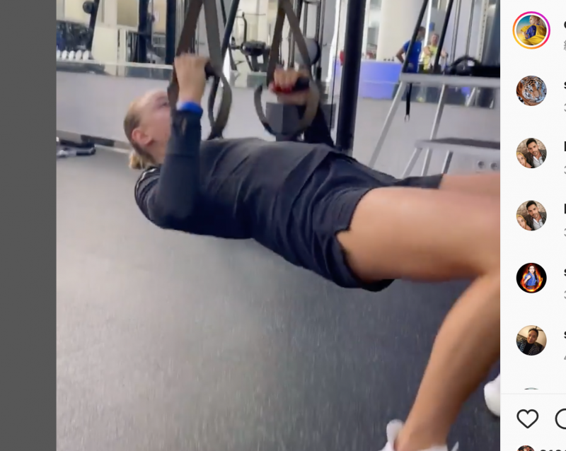 これで背筋か!サスペンショントレーナーで引きのトレーニング、他にも懸垂やボート漕ぎも行う(@DariaBilodidより)