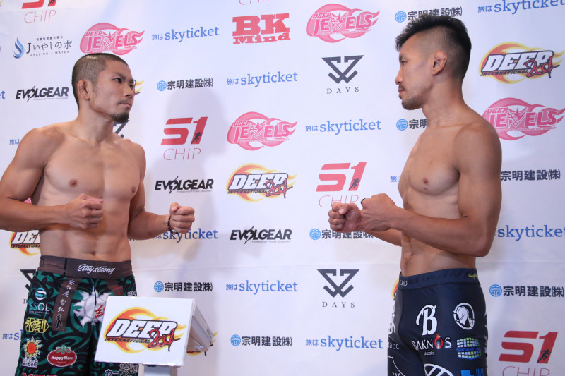 安谷屋(左)と小川のフェイスオフ