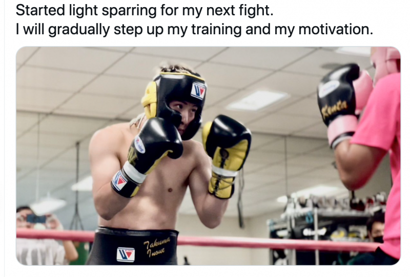 スパーを再開したと報告した井上(井上尚弥Twitterより)