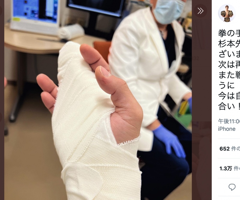 8月4日に拳の手術成功の報告を行なった(武尊Twitterより)