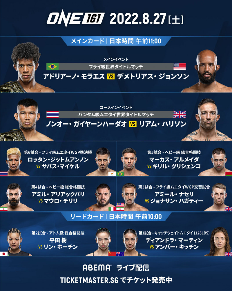 「ONE161」平田の試合は第2試合だ。大会を盛り上げるか。©️ONE