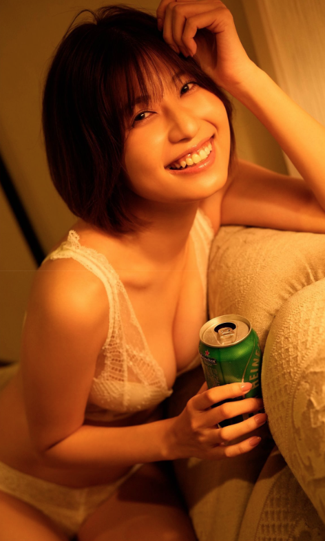 ランジェリーでビール女子(©LUCKMAN/週刊プレイボーイ)