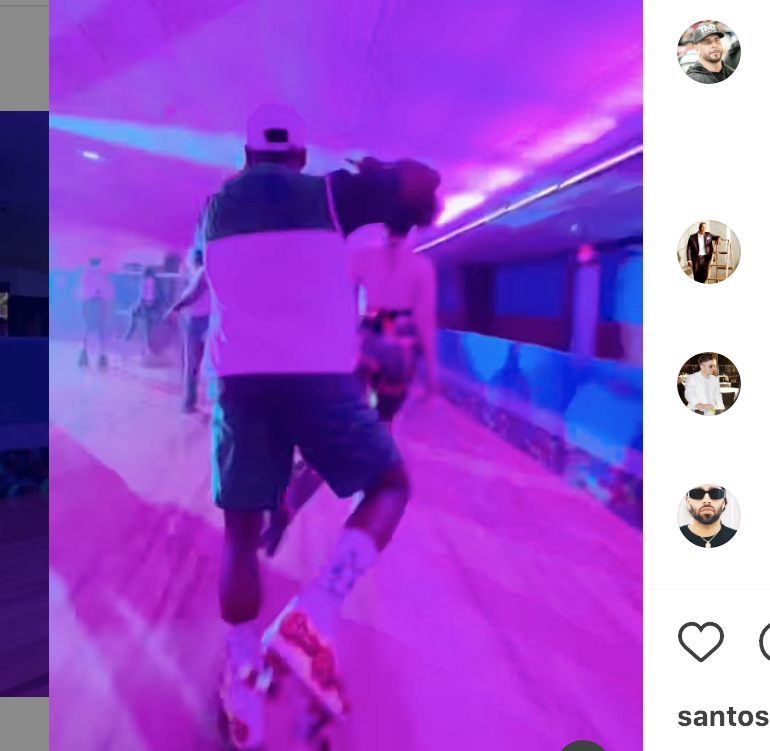 スケートでぶつかりそうになるもかわすメイウェザー(@floydmayweatherより)