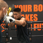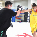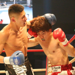 飛びヒザ蹴りを当てる寧仁(2021年3月)