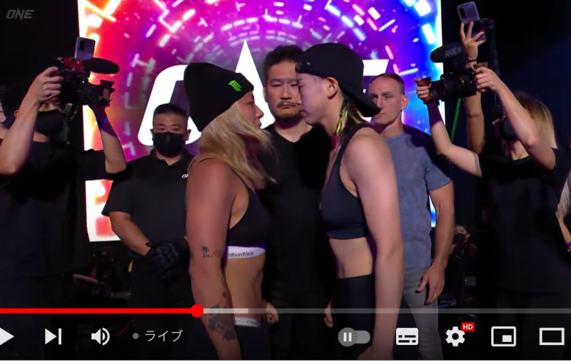 ホーチンと睨み合う平田(ONE公式YouTubeより)