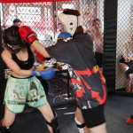 戦う坂口杏里(右/2019年11月)