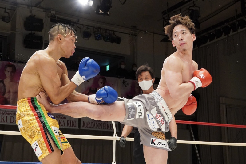 寧仁太にキックを蹴り込む松岡(2022年2月)
