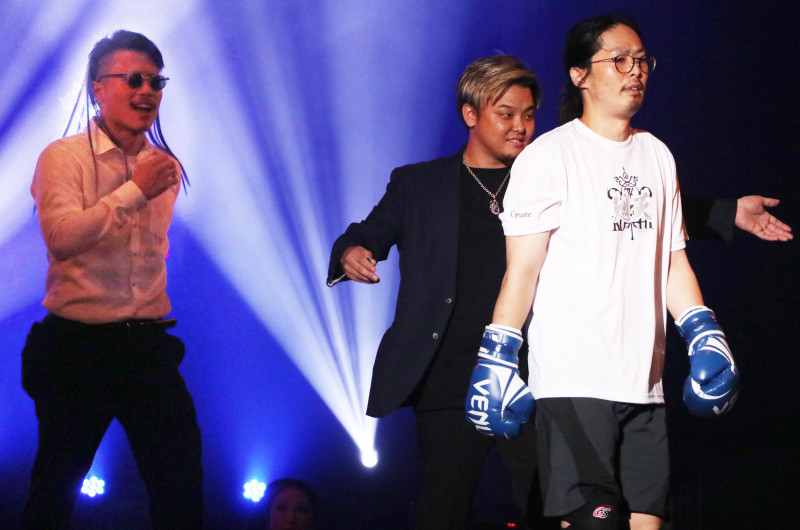 おせーよ山田が10人ニキ(左)、にっけん君をセコンドに引き連れ入場した