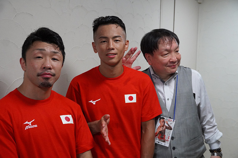 左から八重樫コーチ、武居、大橋会長