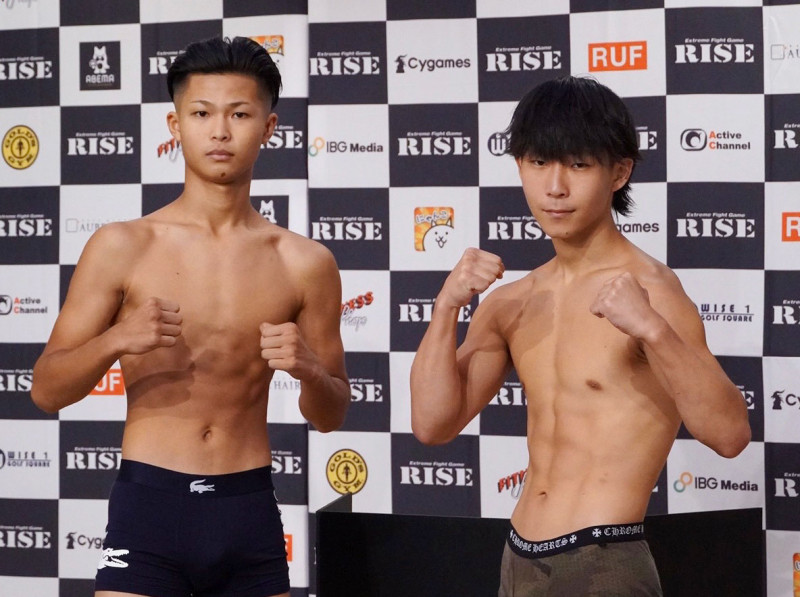 極真会館の樋口(右)がRISE初参戦の16歳・中元(左)と対戦する