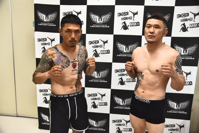 セミファイナルに出場の龍之介(左)とTAGが計量パス