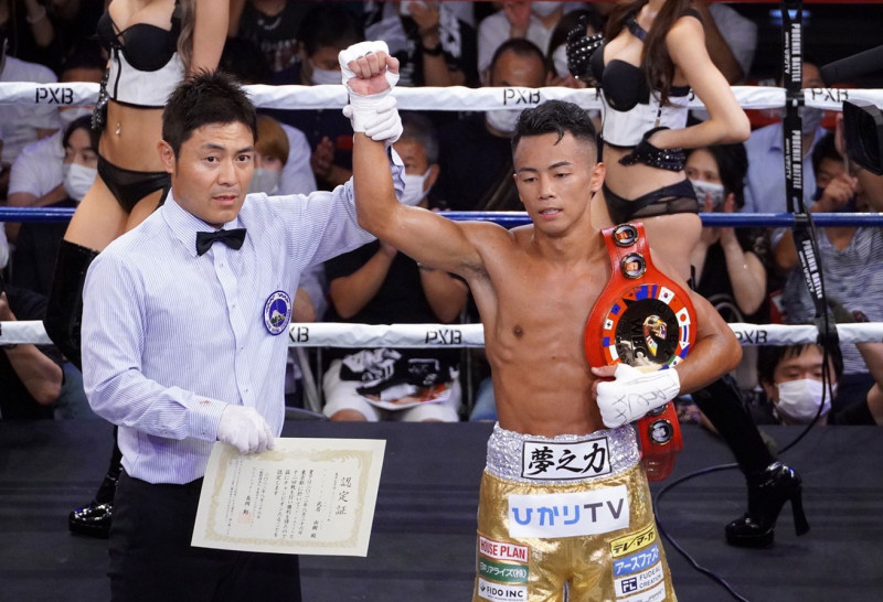 東洋のベルトを肩にかける武居