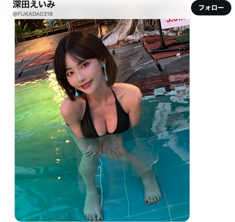 プールで黒ビキニ姿の深田えいみ(深田えいみツイッターより)