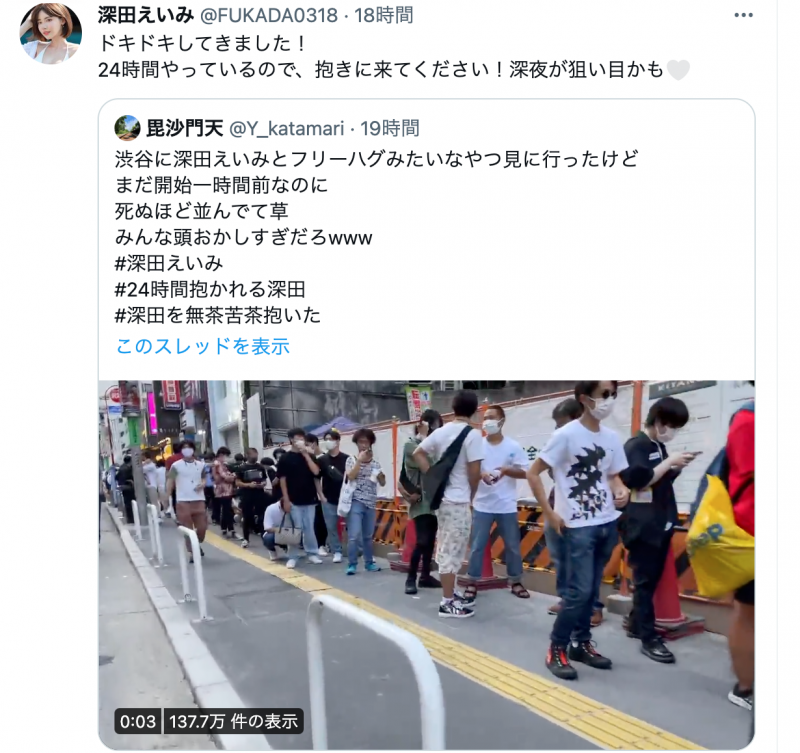 深田えいみハグ会に長蛇の列(深田えいみツイッターより)