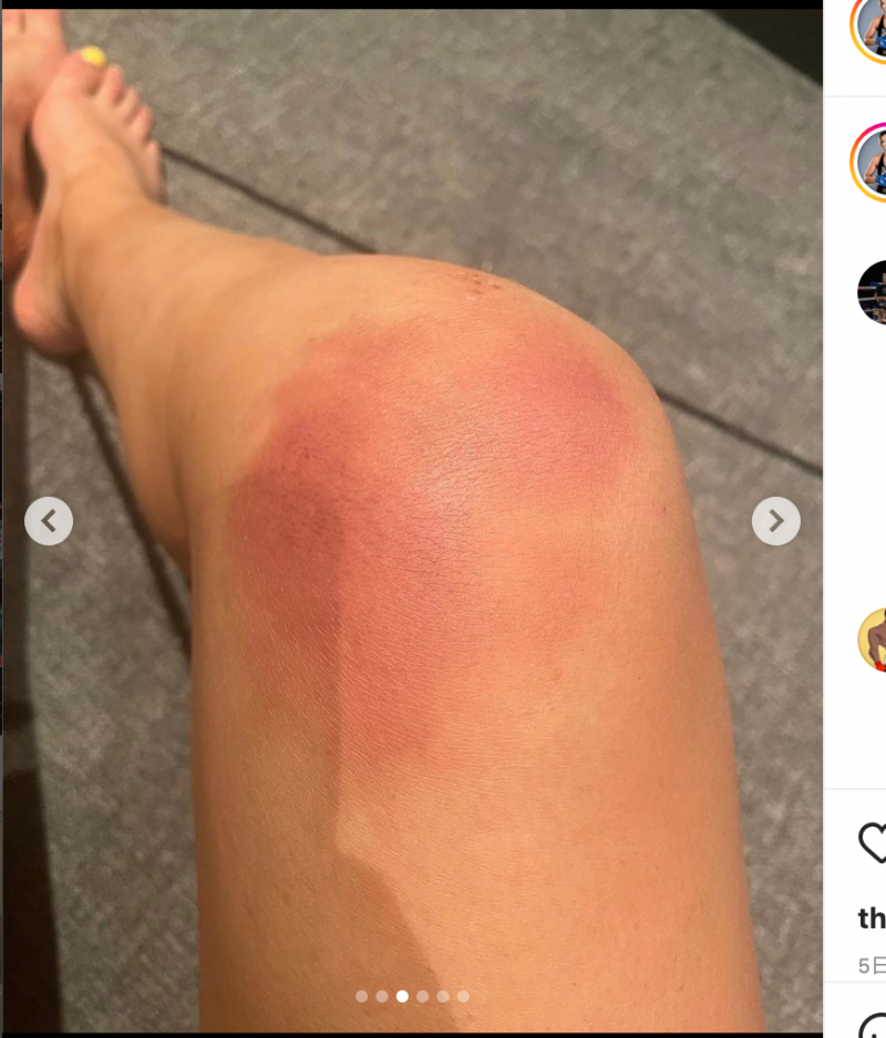 ヒザも赤い大きなアザが@leahmccourtmmaより