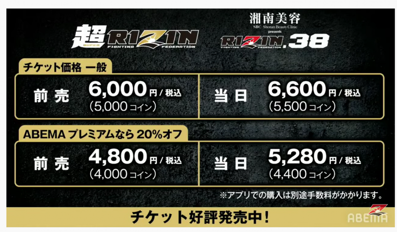 【ABEMA PPV料金表】=超RIZIN&RIZIN.38ⒸRIZIN FF