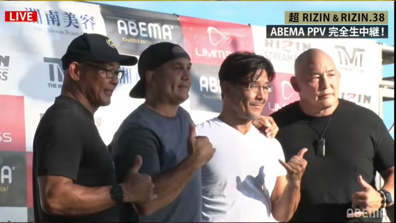 RIZINハワイ大会開催を錚々たるメンバーがサポート。左からイーゲン井上、BJ・ペン、榊原CEO、エンセン井上【ⒸAbemaTV, Inc.】