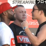 離れた状態で朝倉はマッスルポーズⒸRIZIN FF