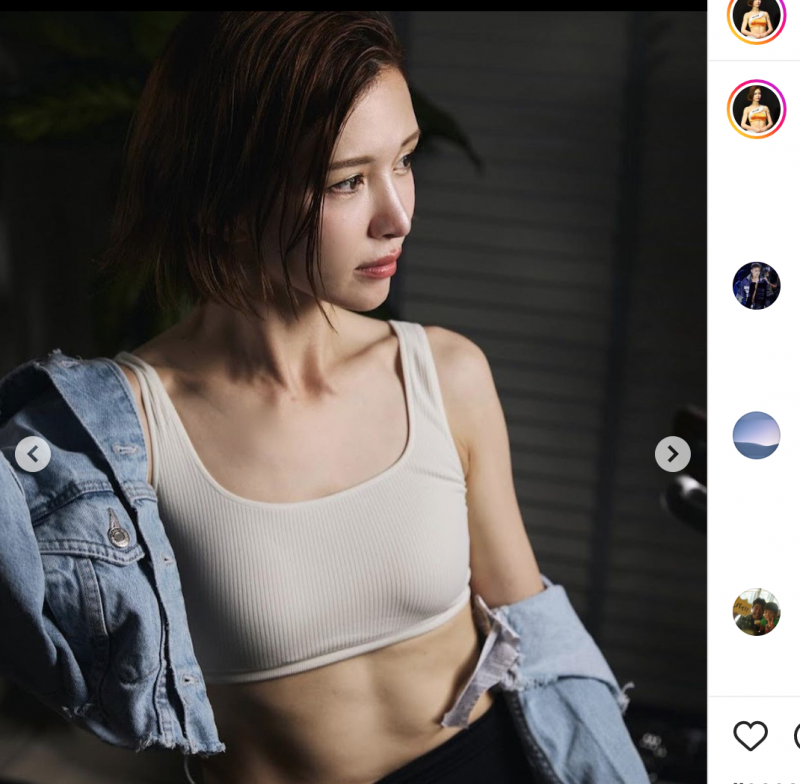 鍛え上げた腹筋をチラ見せするあきぴ(あきぴInstagramより)