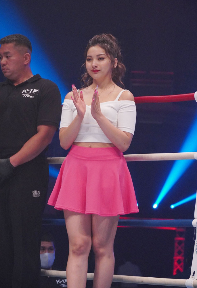 ラウンドガールを務めた篠ゆきぽよ(2021年7月)