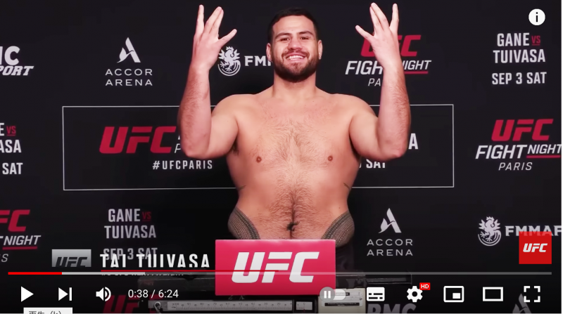 余裕の表情のトゥイバサ(UFC公式YouTubeより)