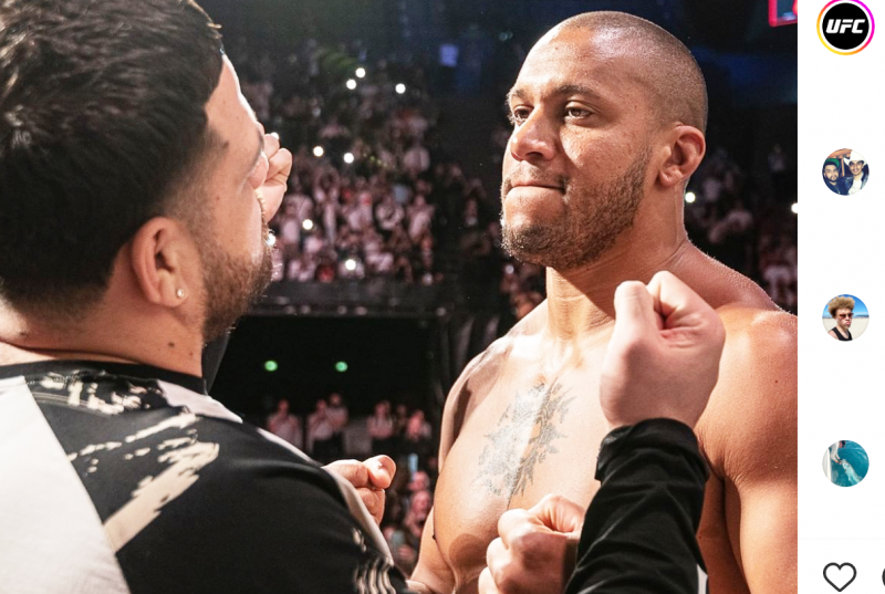 再起戦に挑むガーヌ(右)、激突するトゥイバサ(左)@UFC