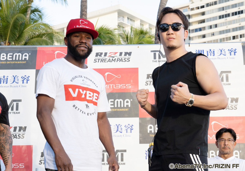 朝倉とメイウェザー。朝倉の方が体格が大きい