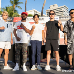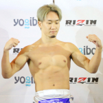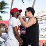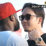 朝倉とメイウェザーが向かい合う。朝倉の腕が太い