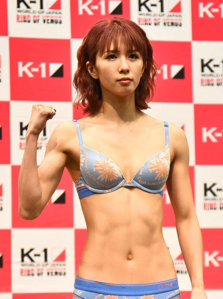 今年6月の計量マッスルポーズ。上腕二頭筋は今の方が発達している