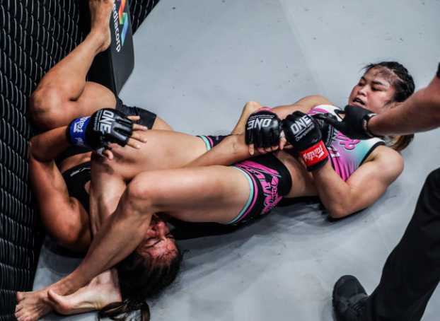 アームバーで一本勝ちするスタンプ=昨年12月