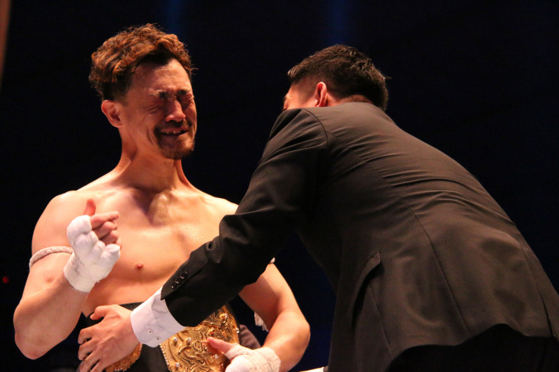 K-1のベルトを手にし感極まった表情の大和哲也(2022年4月)