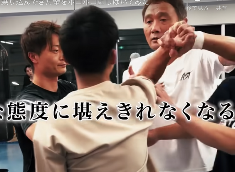 胸ぐらを掴みに来た不良の腕を取る竹原( 竹原テレビより)
