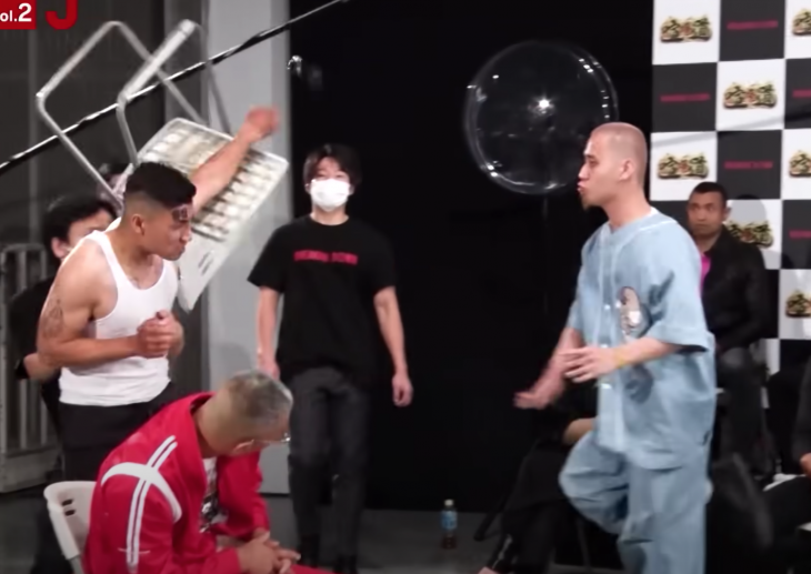 椅子を投げつけるこめお(『朝倉未来』YouTubeチャンネルより)