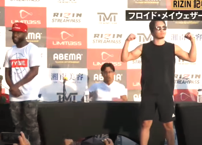 離れた状態で朝倉はマッスルポーズⒸRIZIN FF