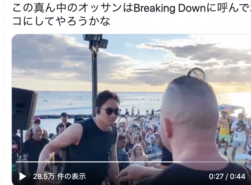 ボディガードが朝倉を突き飛ばした瞬間(朝倉未来twitterより)