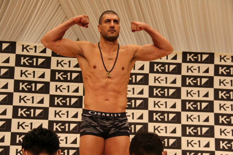 仕上がった身体でマッスルポーズを決めるカリミアン