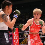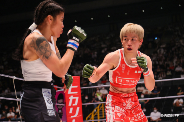 1回戦で因縁の相手・元UFCのアギラーに勝利した浜崎(右/2022年7月)