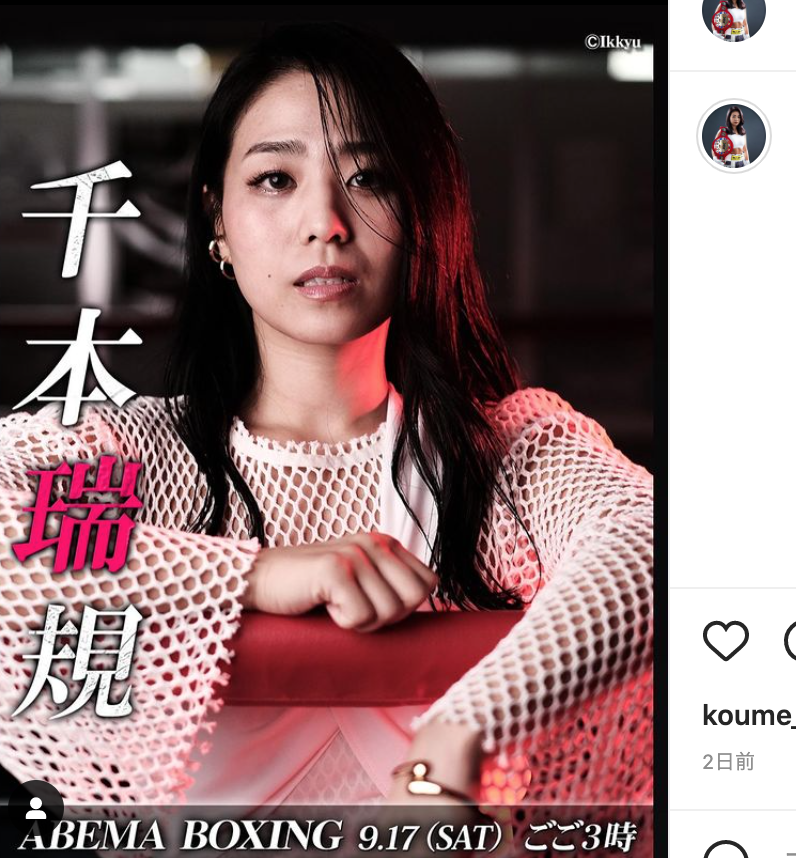 千本が本日のABEMA生中継を告知。(千本のインスタより)