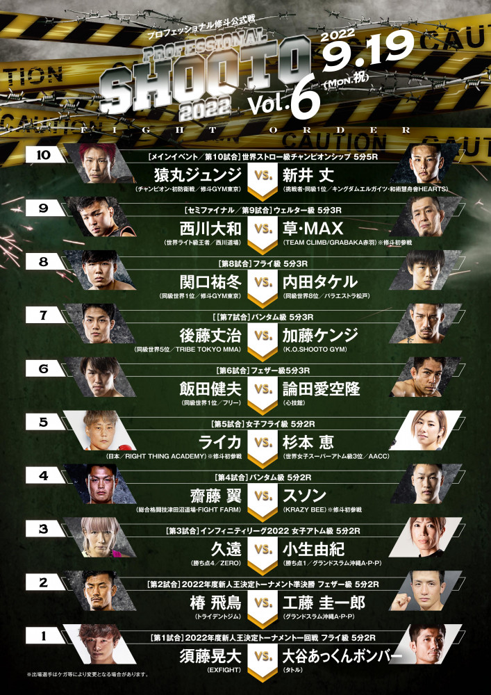 9.19プロ修斗公式戦の試合順