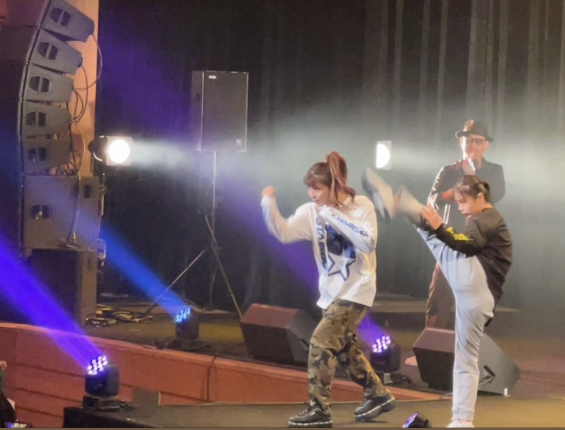 ランウェイでキック&空手を披露するぱんちゃんと長野 @panchanrinaより