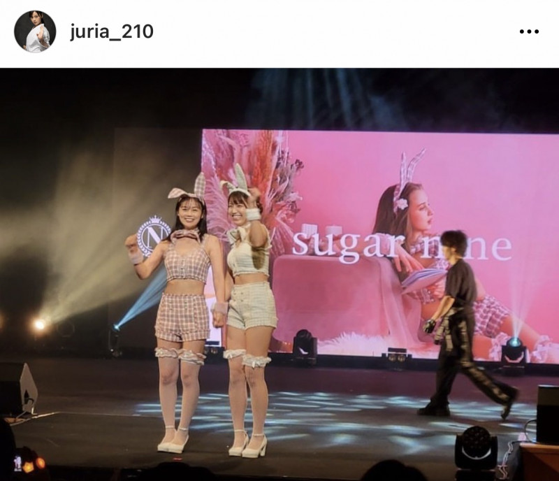 ランウェイでポーズの長野とぱんちゃん @juria_210より