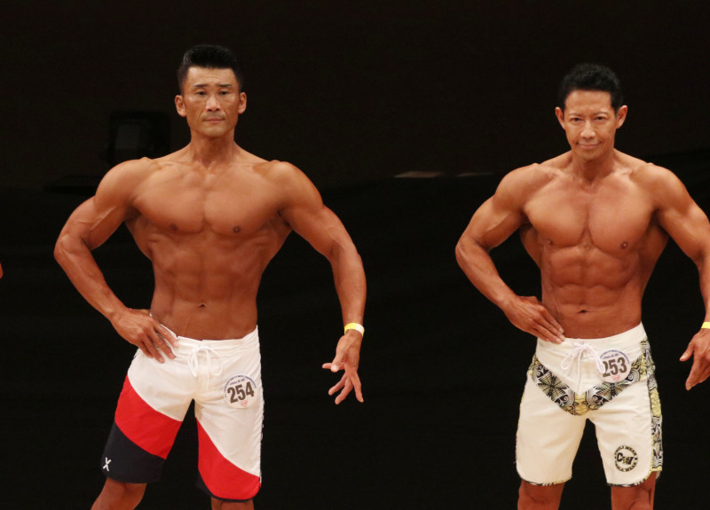 大浦選手(左)と、右は昨年の『ゴールドジムジャパンカップ』のメンズフィジーク176cm超級で優勝した中村宗人選手