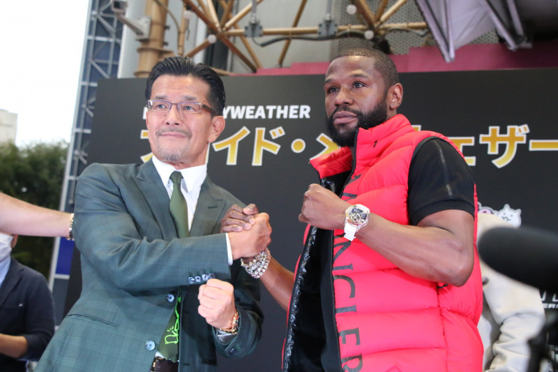 RIZIN榊原代表(左)とメイウェザー