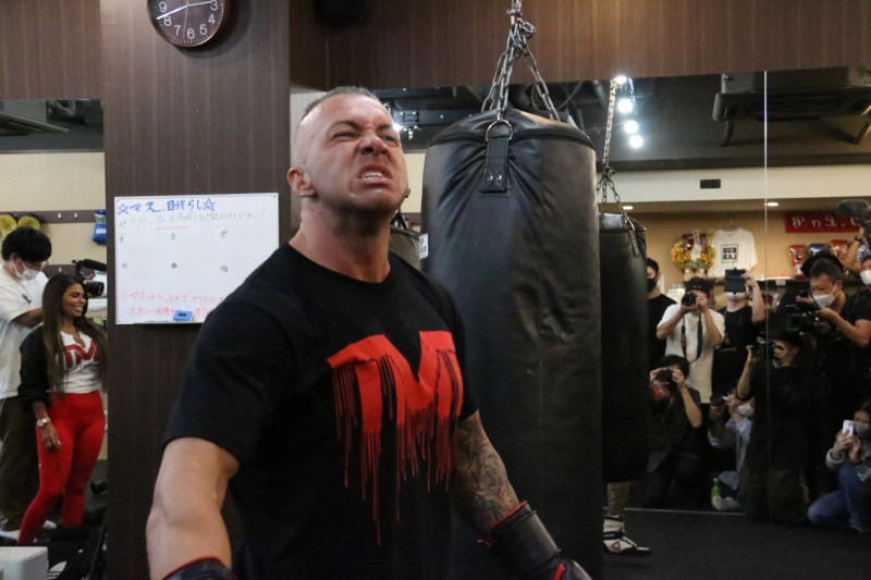 ミットを叩いた後、どうだと言わんばかりのこの表情