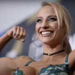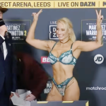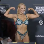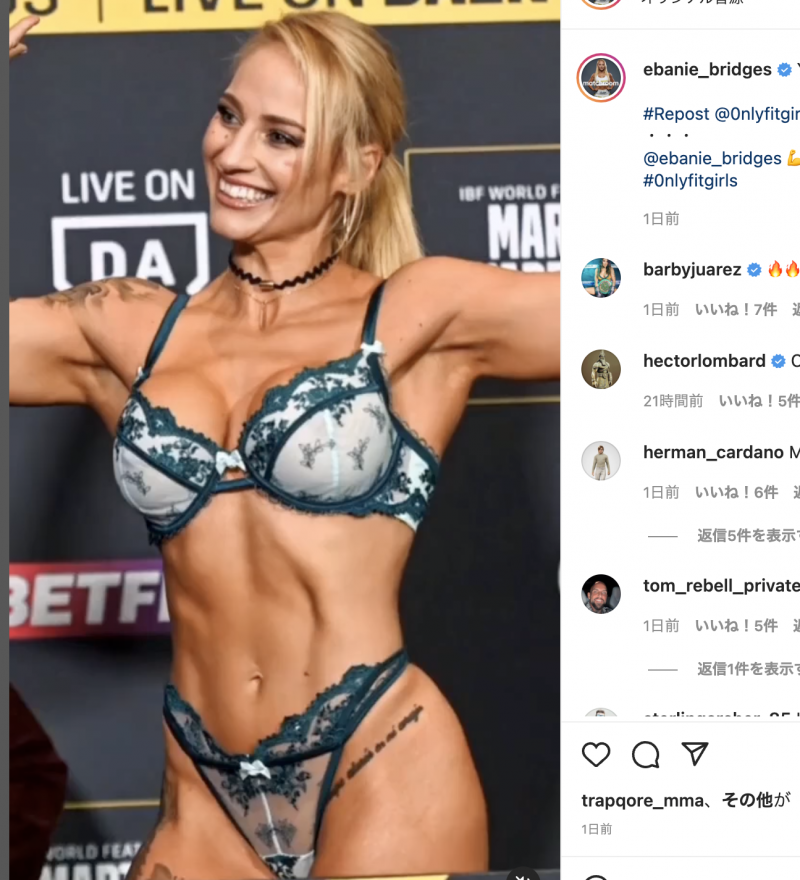ランジェリー姿で計量を行うブリッジス。(c)ブリッジスインスタより