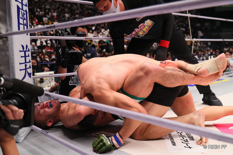 ギロチンを極めかける扇久保