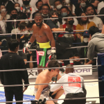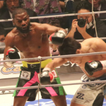 (2)パンチのヒット後、メイウェザー の顔が上がる(@rizin_Englishより)